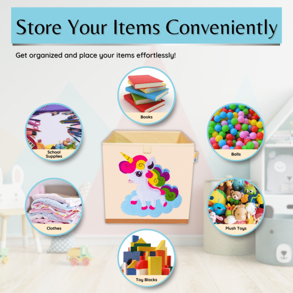 - ✅Easy Set-up Collapsible Toy Storage for Kids – This kids storage box 13 inch bin is made with collapsible bottom structure comes with a front pull tab and cardboard inserts to keep sides stiff. It’s also suitable for road trips, car travels, camping, and help you to store kids books, toys, clothes and shoes.